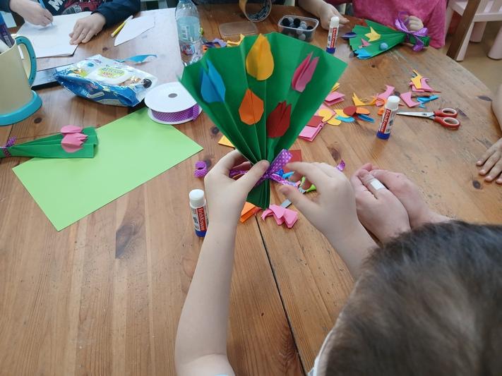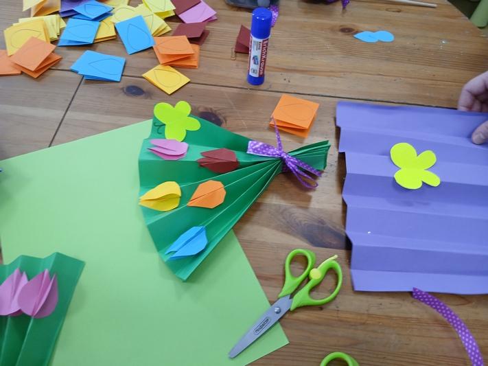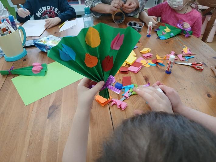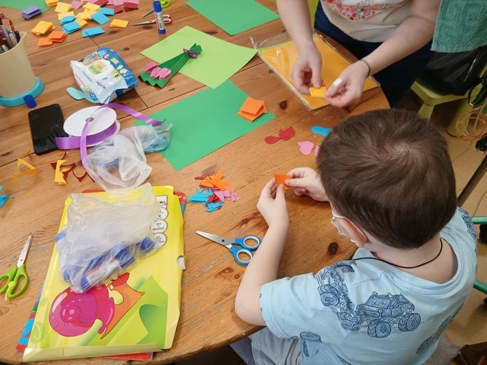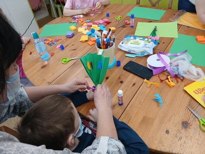 Букет для мамыРубрики: Благотворительные программы Каждый год начало весны знаменуется торжеством 8 Марта – днем, когда всех мам, бабушек, сестер, дочек поздравляют с Женским днем и по традиции дарят цветы. Но как быть детям, кто проходит лечение в краевом детском онкогематологическом центре и в силу возраста еще не может купить такой живой подарок? Помочь детям справиться с этой проблемой смогли воспитатели детского сада № 400 г. Перми Шибанова Елена Юрьевна и Булатова Яна Александровна, предложив им сделать своими руками букет для мамы из цветной бумаги. Ребятам был показан готовый образец букета и даны заготовки для его изготовления. Елена Юрьевна и Яна Александровна наглядно показали детям, как сложить «стебли» для букета, как склеить лепестки бутона, как удобнее их закрепить. Каждый ребенок сам выбирал цвет лепестков будущих тюльпанов и решал, где именно расположит цветы на «стеблях», сколько их всего будет и каких, будут ли на его букете в качестве украшения бабочки, какой будет бант. Например, девочка А. 7-ми лет выбрала разноцветные лепестки, из которых смастерила бутоны тюльпанов, но в свой букет включила только розовые, потому что розовый – ее любимый цвет. Остальные дети свои букеты сделали из бутонов разных цветов. Надо было видеть довольные лица детей, когда они перевязывали цветной лентой свои букеты и с радостью дарили их мамам. Юные пациенты детского онкогематологического центра не только сами изготовили букеты для мам, но и получили в подарок яркие бумажные цветы, сделанные воспитанниками детского сада № 400, которые привезли для них Елена Юрьевна и Яна Александровна. Так детские руки наполнили праздничный день не только красотой бумажных букетов, но и теплом своих сердец.